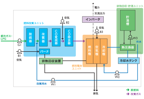 ※W1:改質水ポンプ W2:冷却水ポンプ