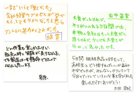 このアントレを通して私たち大学生もとても勉強になりました。ありがとうございました。