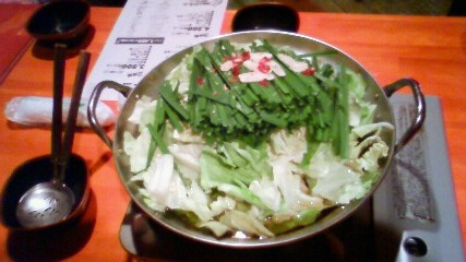 鳥皮サラダ、もつ鍋、明太玉子焼、揚げ物、串焼き、ちゃんぽん麺、デザートと料理はテーブルいっぱいに並びます。