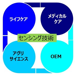 センシング技術を基盤として、ライフケア分野、メディカル分野、アグリサイエンス分野